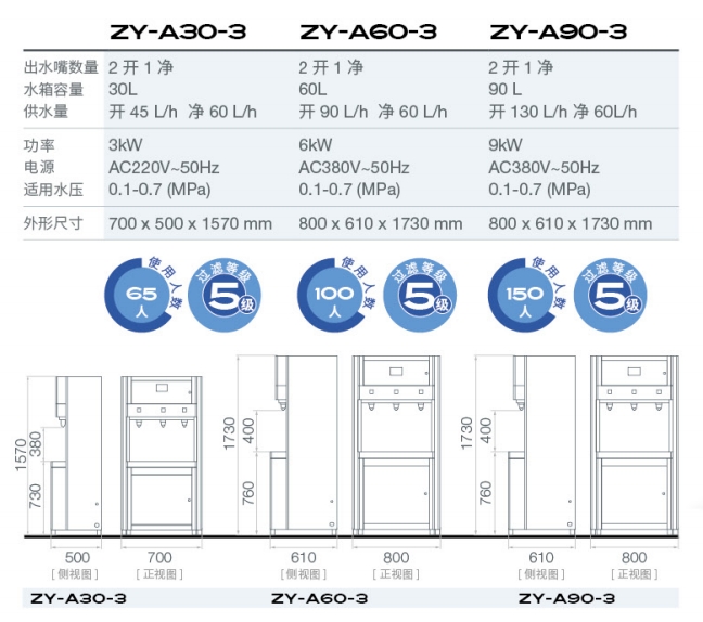 供水量: 开水90 L/h,净水60L/h